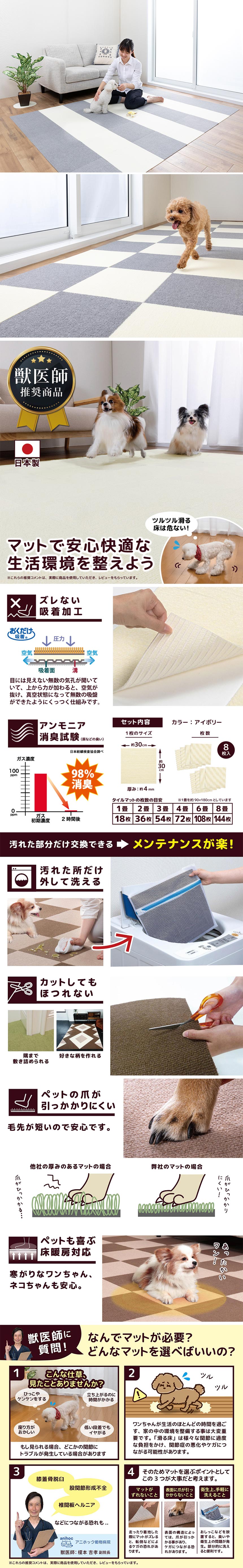 - ペット用撥水タイルマット 同色 アイボリー 40枚入