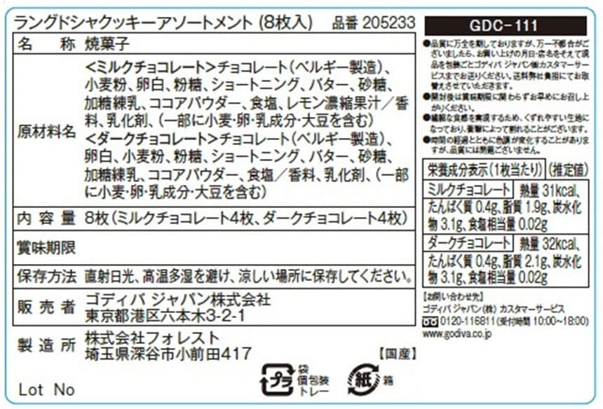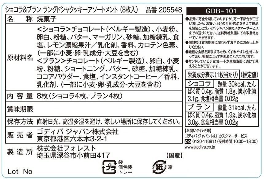 - ショコラ&ブランラングドシャクッキー GDB-101 8枚入 / ラングドシャクッキー GDC-111 8枚入