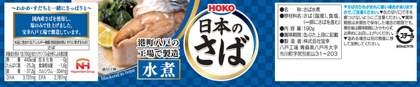 [24個]宝幸 日本のさば 水煮 190g | 国内産さばを使用し、塩のみで仕上げました。
