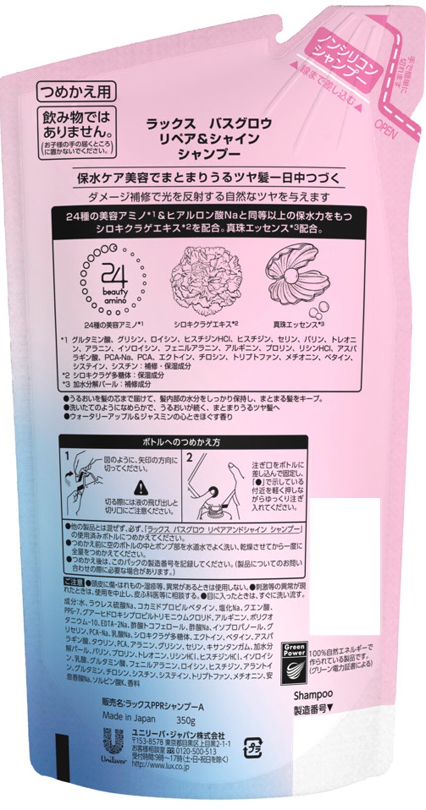 【ラックス バスグロウ リペアアンドシャイン シャンプー つめかえ用 350g】