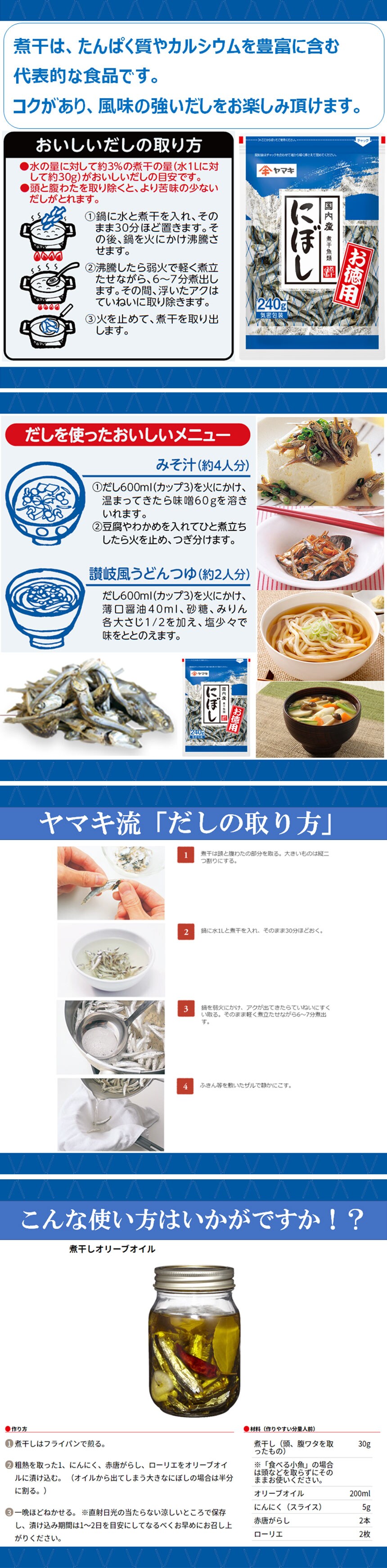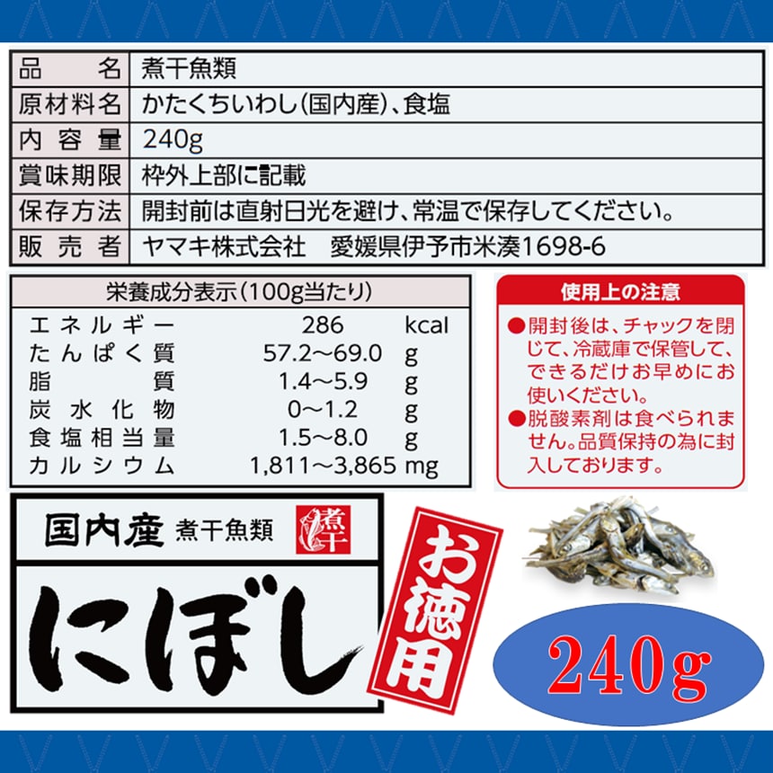 [30袋]ヤマキ お徳用にぼし 240g | コクがあり、風味の強いだしがとれる、お徳用タイプの煮干。