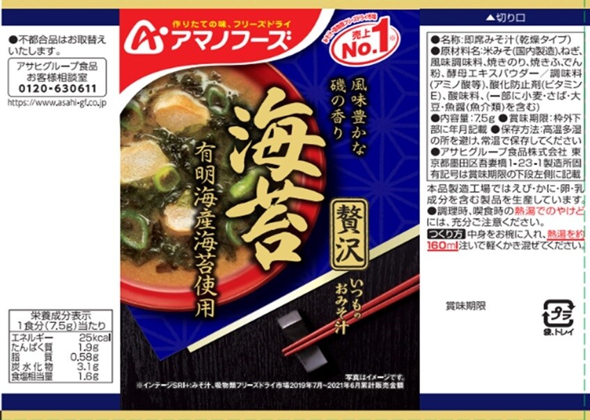 【いつものおみそ汁贅沢 海苔】小麦、さば、大豆、魚介類
