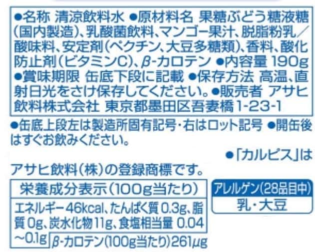 - 「すこやかカルピスⓇ マンゴー」 缶 190g