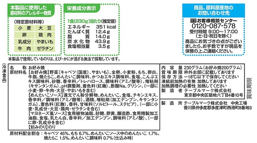 [12個]テーブルマーク ごっつ旨い 明太もちお好み焼 230g | ふんわりとした明太子味の生地にもちが入ったお好み焼。
