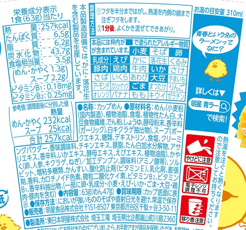 ・明星 青春という名のラーメン 誘惑でかタマゴ チャンポン味 63g×12個 - 賞味期限