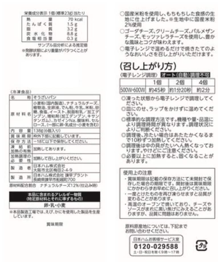 - [冷凍]日本ハム もちもちしたチーズパン 6個入×8袋