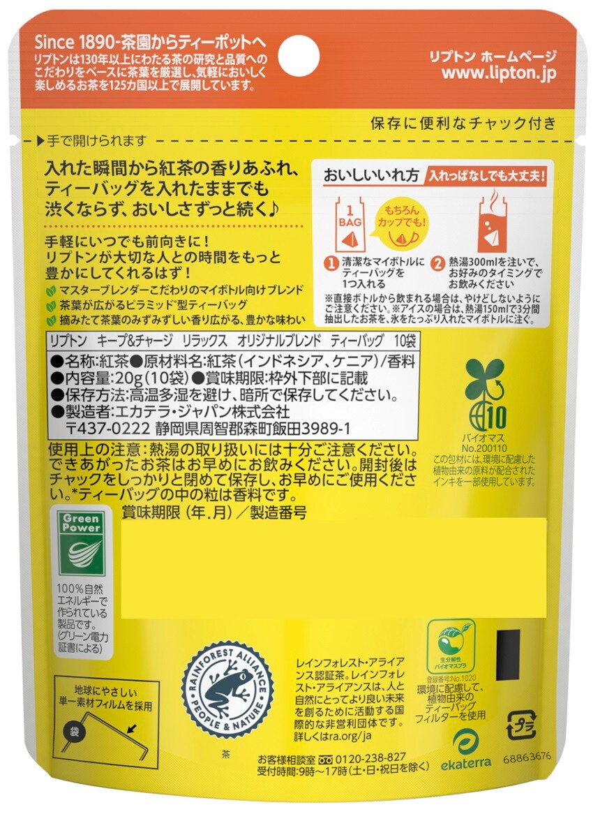 - リプトン キープ&チャージ リラックス オリジナルブレンド ティーバッグ 20g (10袋入)