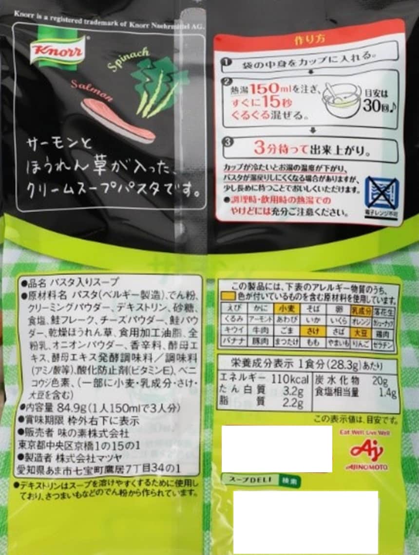 ・クノール「スープDELI(R)」サーモンとほうれん草のクリームスープパスタ 計15食(84.9g(3食入)×5個) - 賞味期限