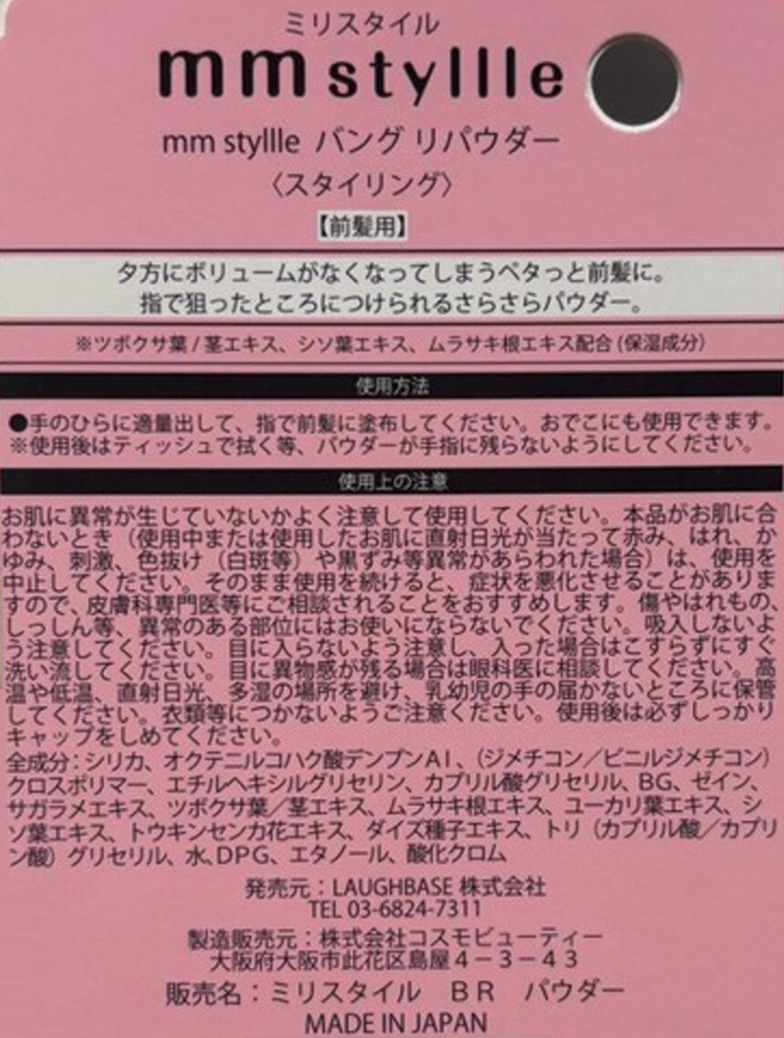 [3個]LAUGHBASE mmstyllle バングリパウダー 7g | ~前髪にこだわるあなたに~