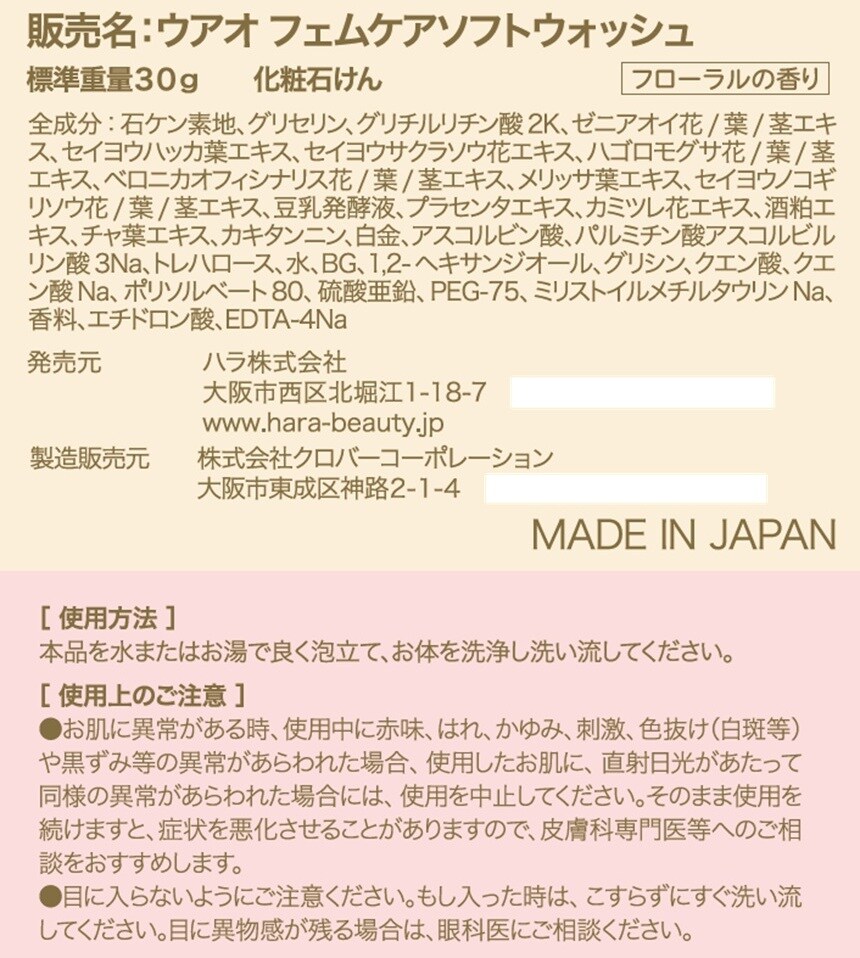 [5個]ハラ ウアオ フェムケア ソフトウォッシュ 30g | デリケートな女性の悩みにー私たちのための新習慣―