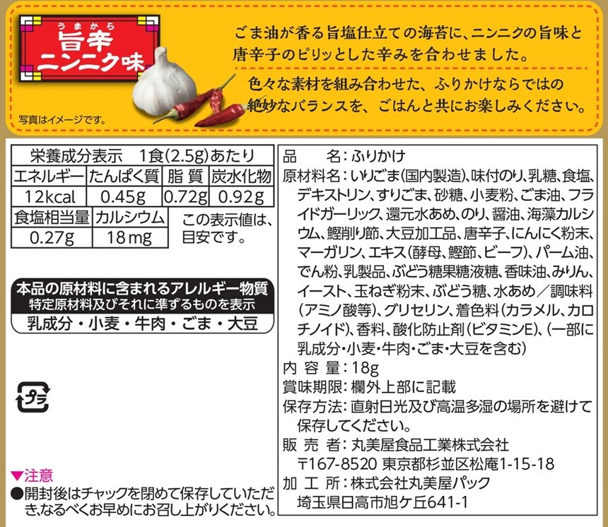 【日替数量限定】[30袋]丸美屋食品工業 韓国海苔風ふりかけ 旨辛ニンニク 18g | ごま油の風味が特徴のふりかけです。