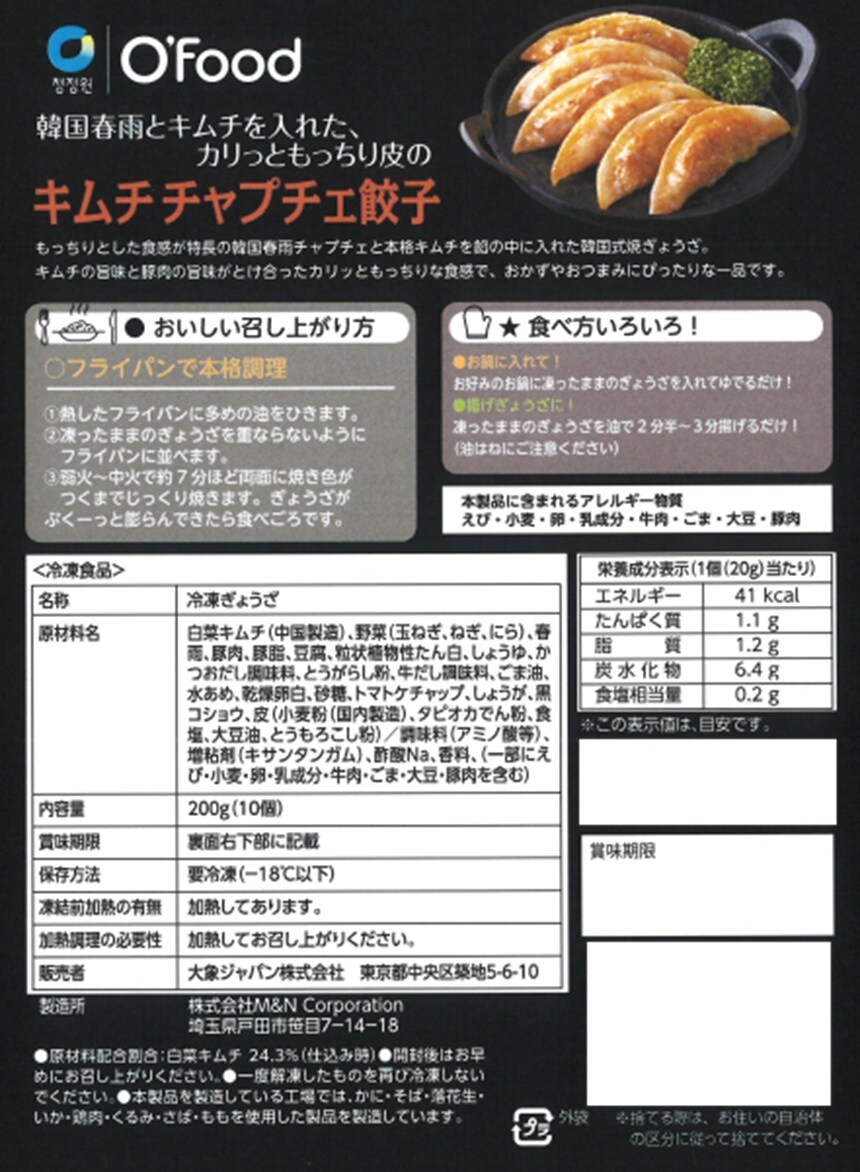 [10袋]大象ジャパン キムチチャプチェ餃子 200g | 韓国定番料理の「チャプチェ」と「キムチ」をプラス!