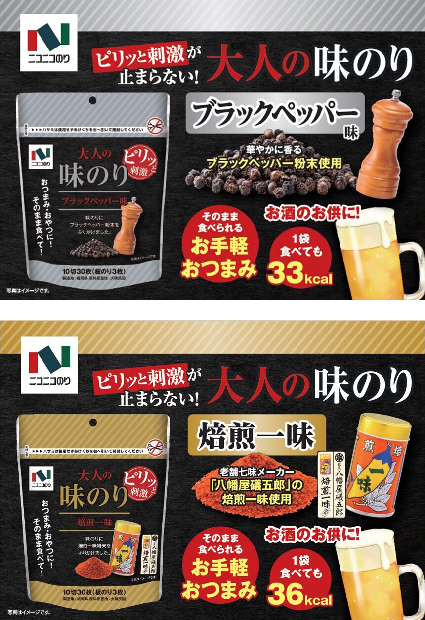 - 味のり ブラックペッパー味 10切30枚 / 焙煎一味 10切30枚