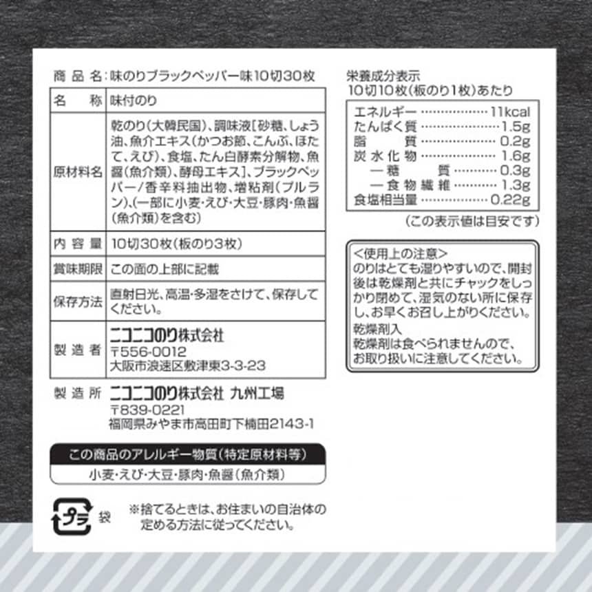 - ・味のりブラックペッパー味 10切30枚×8袋