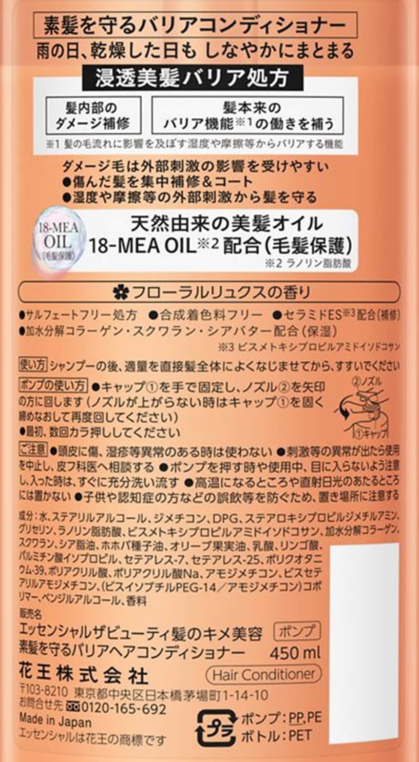 【エッセンシャル ザビューティ 髪のキメ美容素髪を守るバリアコンディショナー ポンプ 450ml】