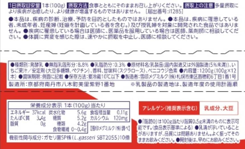 内臓脂肪を減らし、腸内環境を改善するガセリ菌SP株入りのむヨーグルト、おいしくすっきりと飲める、赤い果実感のあるいちごのおいしさ(ケース)