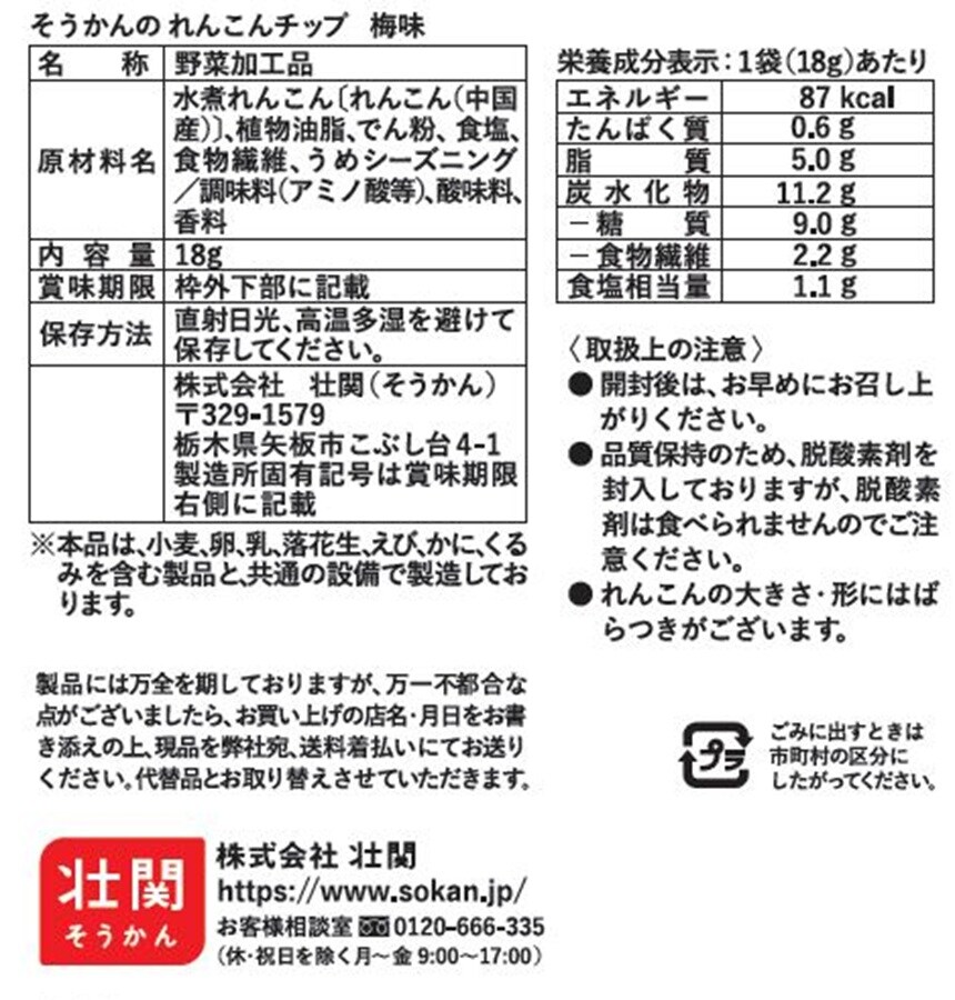 [36個]壮関 そうかんのれんこんチップ 梅味 18g | さっぱり梅味のれんこんチップ