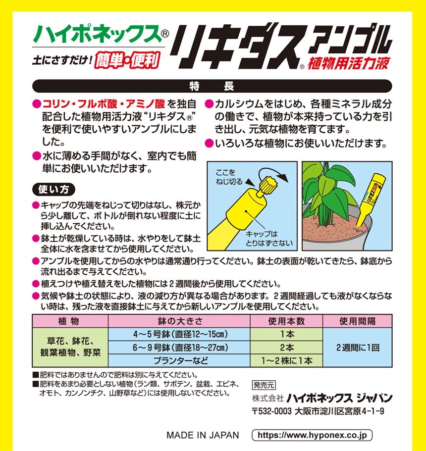 [10個]ハイポネックスジャパン ハイポネックス リキダスアンプル 30ml×10本入 | 植物のパワーを引き出し、元気に育てる!