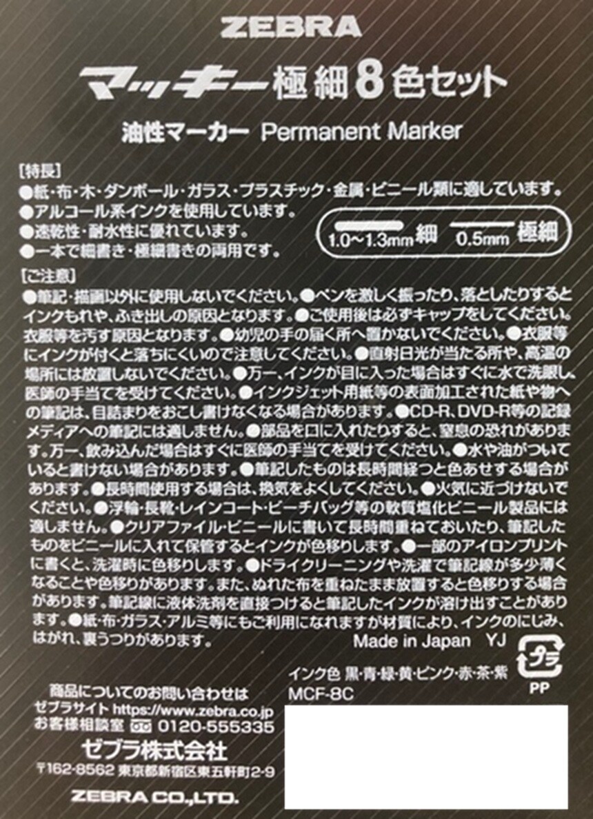 線幅:細1.0ー1.3mm、極細0.5mm。