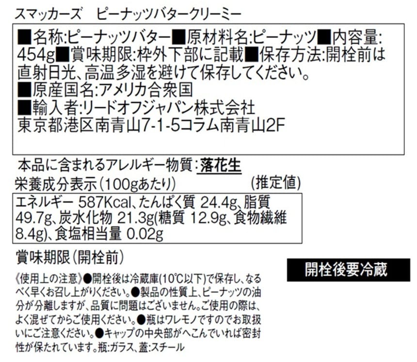 - スマッカーズ ピーナッツバタークリーミー 454g