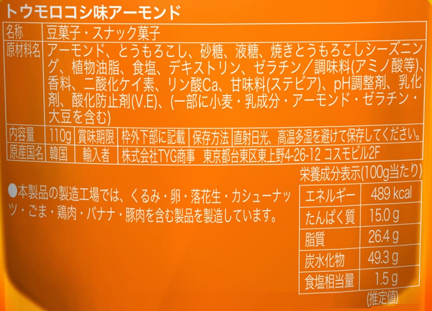 [20個]トポスエンタープライズ トウモロコシ味アーモンド 110g | 香ばしいトウモロコシとアーモンドの絶妙ハーモニー!