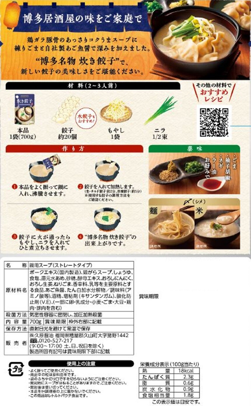 ・博多名物 炊き餃子鍋つゆ 700g×3袋