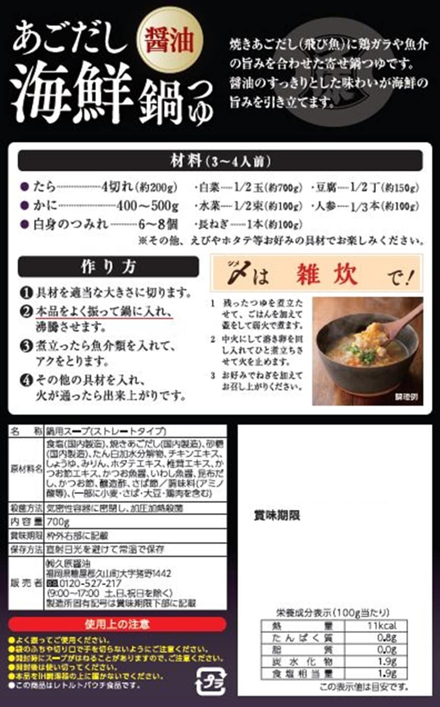 ・あごだし海鮮鍋つゆ(醤油) 700g×3袋