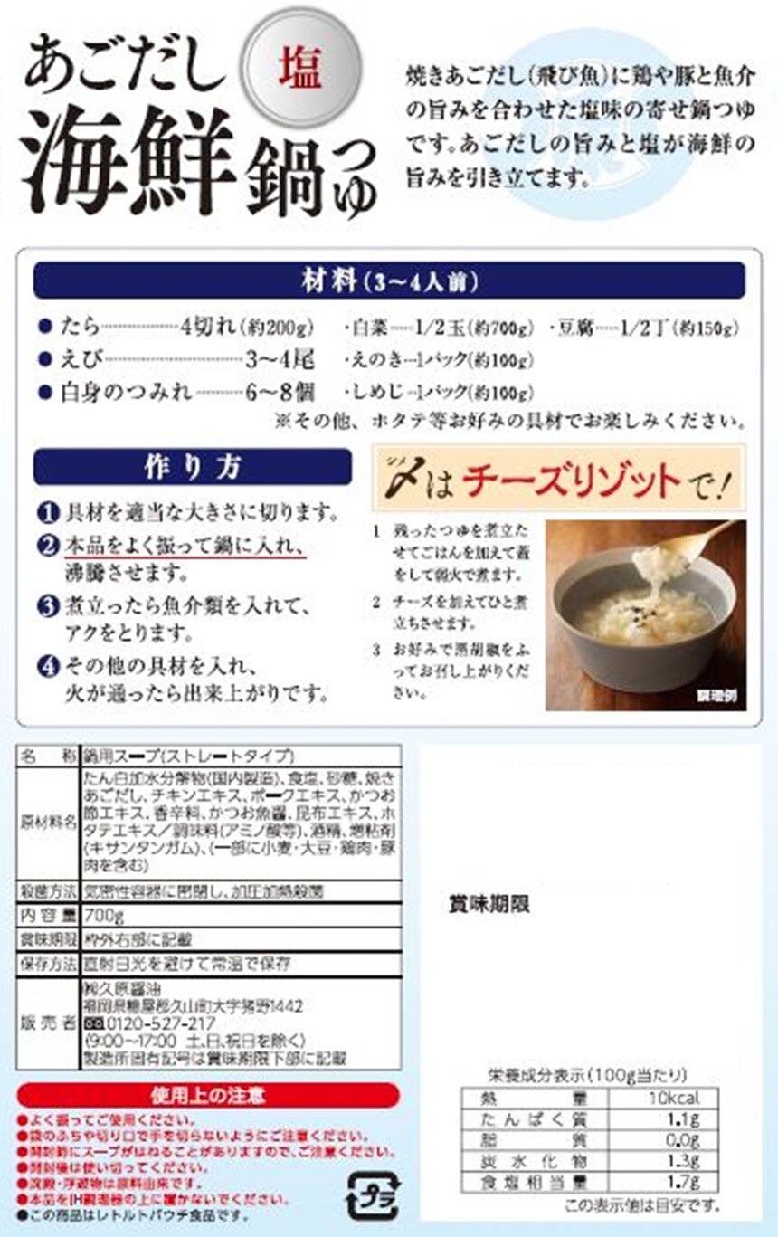 ・あごだし海鮮鍋つゆ(塩) 700g×3袋 - 賞味期限