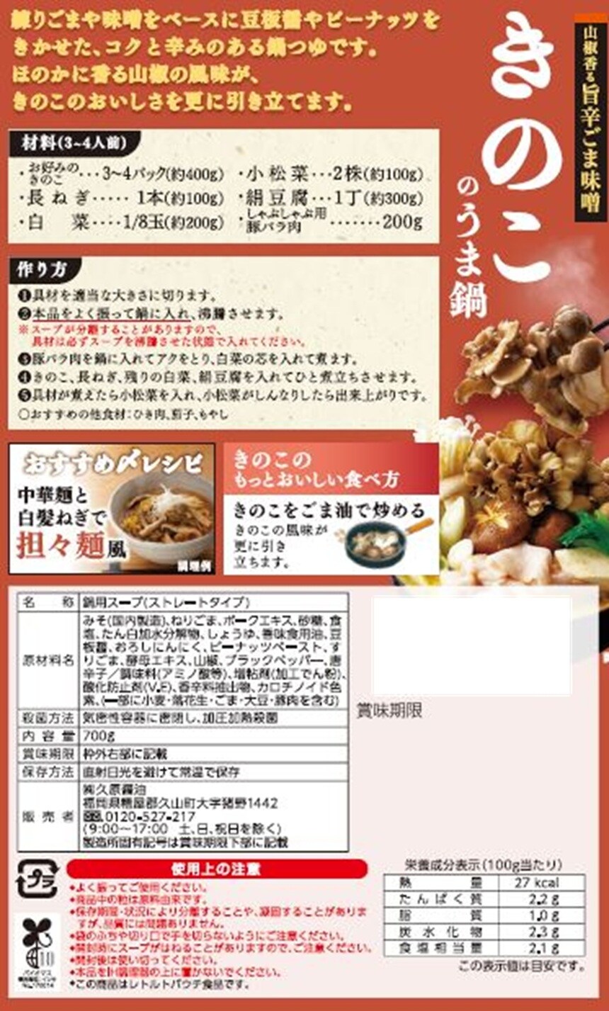 練りごまや味噌をベースに豆板醤やピーナッツをきかせた、コクと辛みのある鍋つゆです。