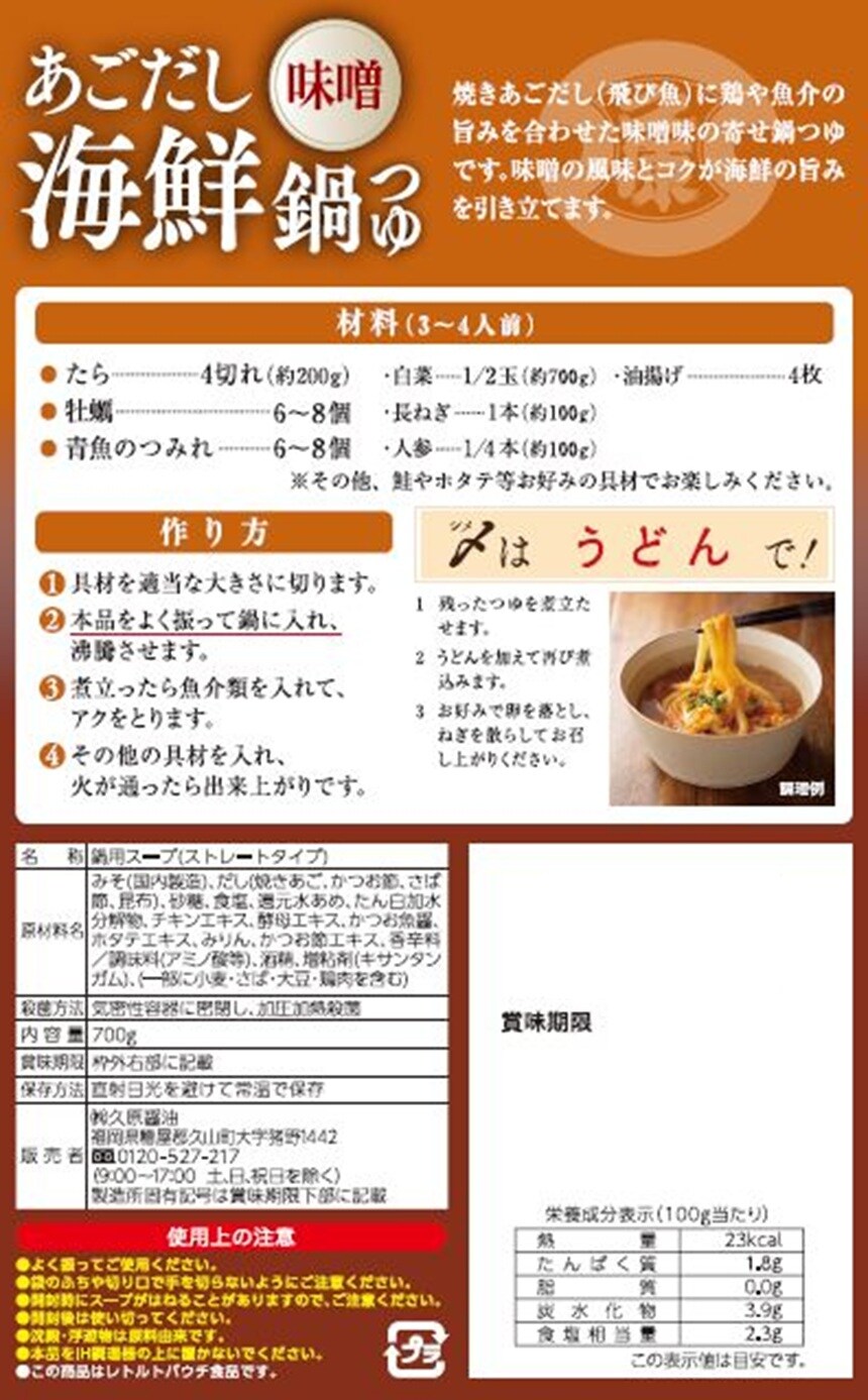 ・あごだし海鮮鍋つゆ(味噌) 700g×3袋