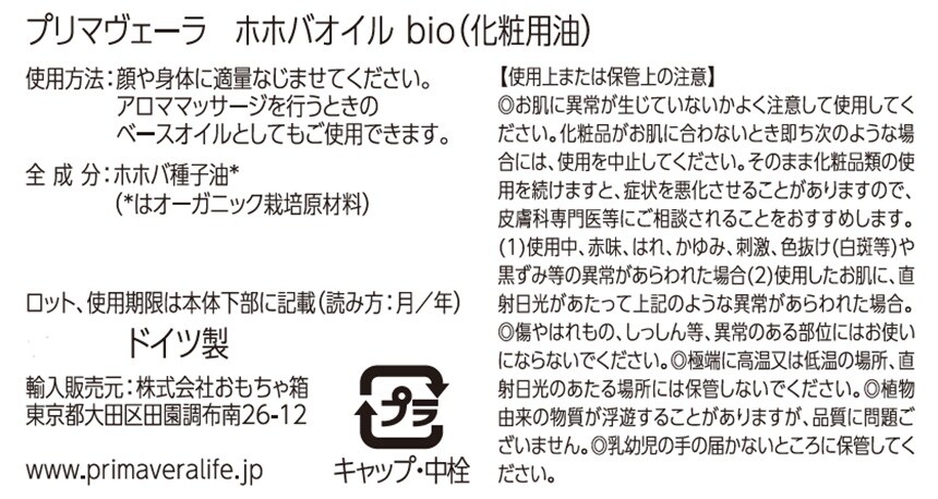 [1本]おもちゃ箱 プリマヴェーラ ホホバオイル bio 50ml (試供品) | ドイツNo.1オーガニックアロマ・スキンケアブランド