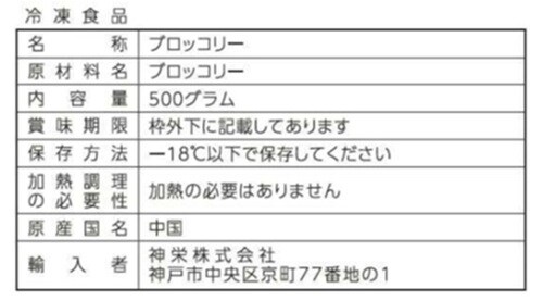- ・中国産 便利な自然解凍品 ブロッコリーIQF 500g×3袋