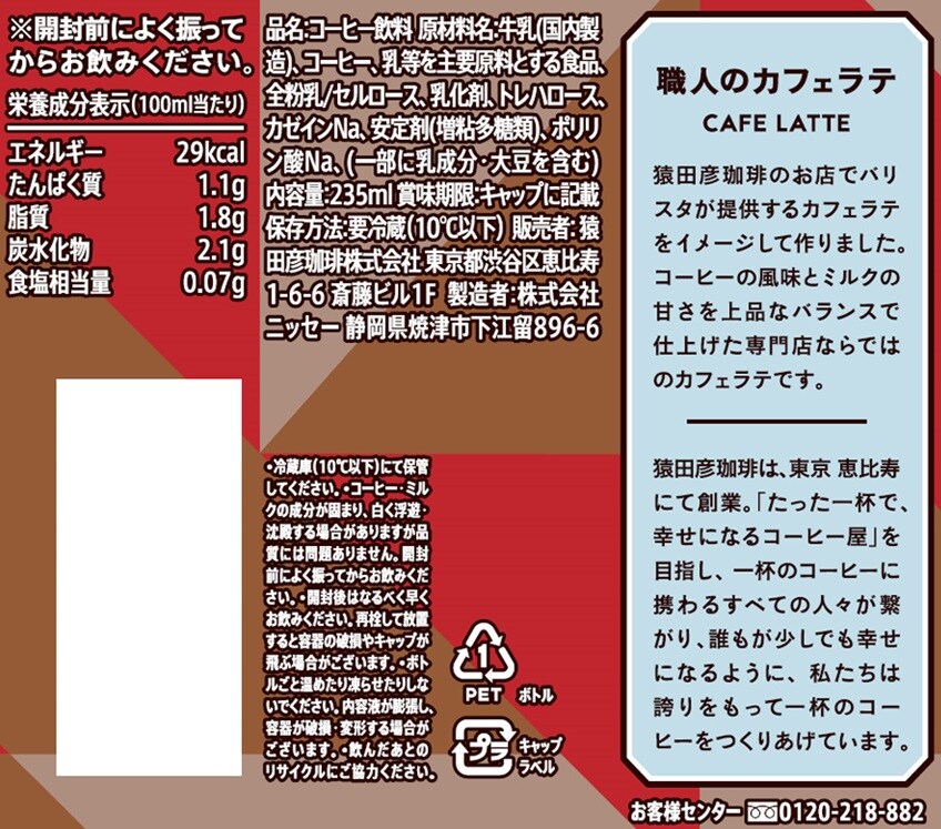 猿田彦珈琲のお店で、バリスタが提供する砂糖不使用のカフェラテを思わせる、満足感の高い一杯です。配合するエチオピア産のコーヒーは、2020 年の品評会で優勝したエチオピアのニグセ・ゲメダ氏のコーヒーを使用しています。