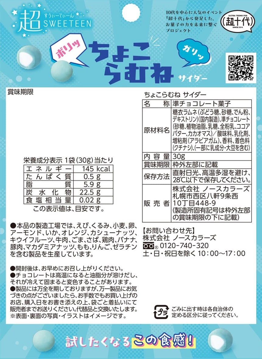 [72袋]ノースカラーズ ちょこらむね サイダー 30g | 食感楽しむチョコレート