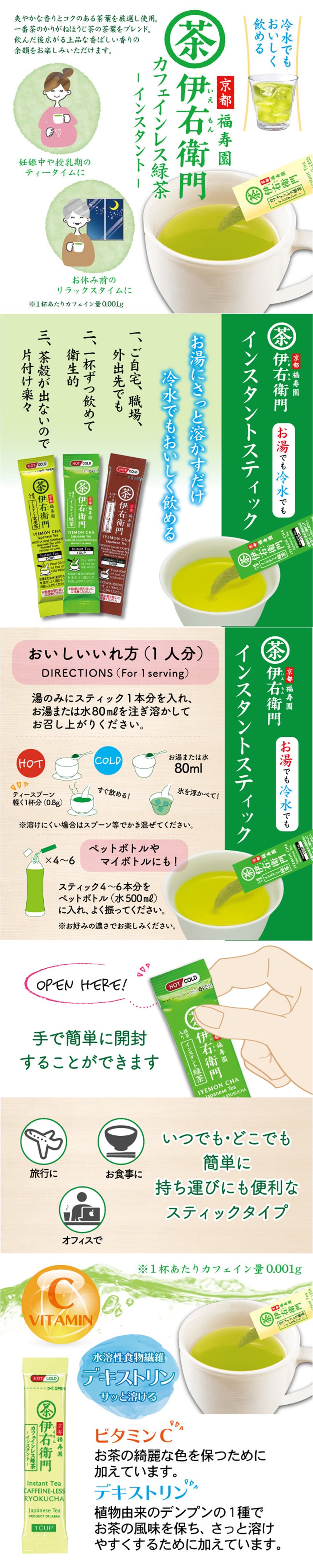 - 伊右衛門 カフェインレス インスタント緑茶スティック 30本入