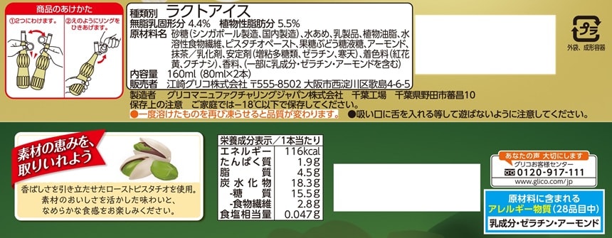 - パピコ 大人の濃厚ジェラート ピスタチオ 160ml