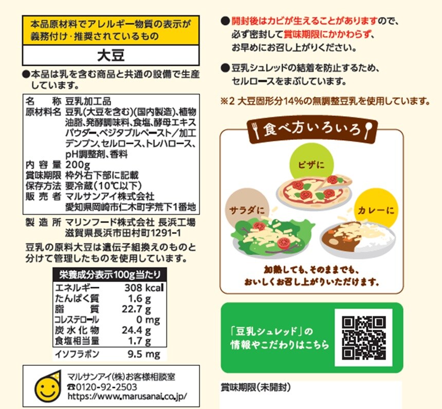 [40個]マルサンアイ 豆乳シュレッド 200g | 豆乳を使用したチーズ風食品です。一般的なチーズと同じように、お料理にお使いいただけます。
