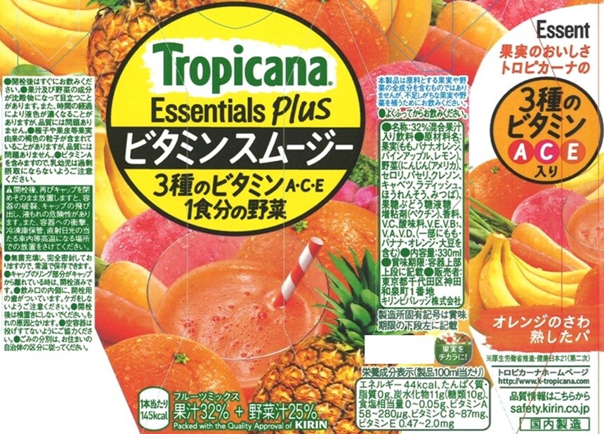 [36本]キリンビバレッジ トロピカーナ エッセンシャルズ プラス ビタミンスムージー 330ml LLプリズマ | おいしいついでに栄養補給できる果実スムージー。