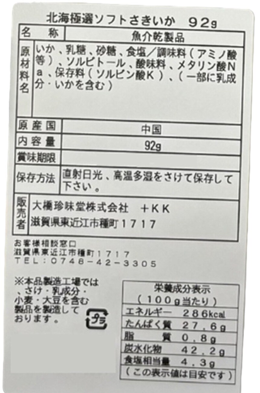 ・北海極選 ソフトさきいか 92g×10個 - 賞味期限