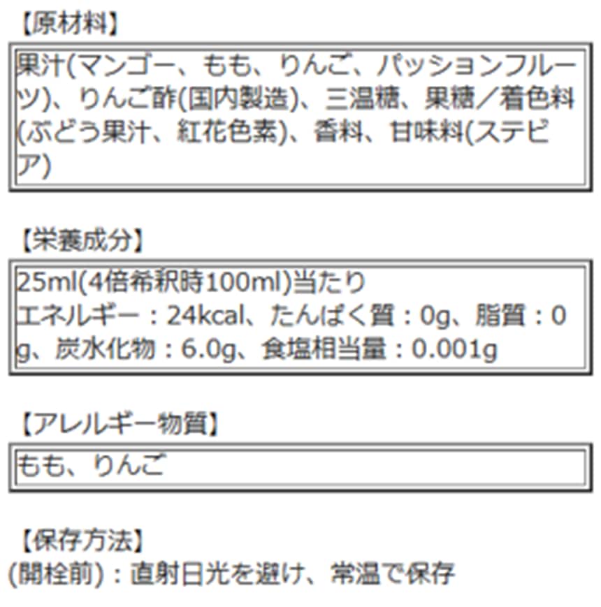 りんご酢と複数の果汁をミックスした4倍希釈のビネガードリンク。