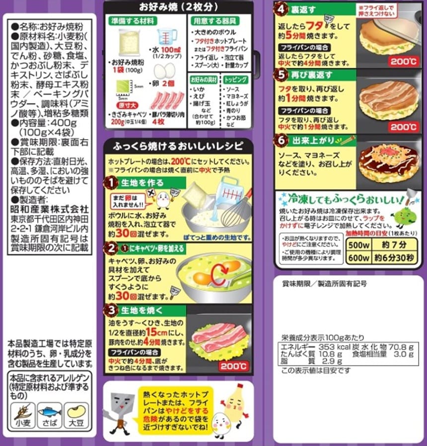 [24個]昭和産業 おいしく焼ける魔法のお好み焼粉 400g(100g×4袋入) | 3つの魔法のわけで、おいしいお好み焼きが失敗なく作れます。