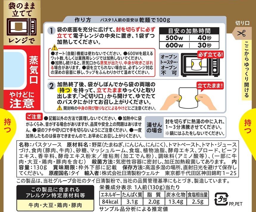 [60個]日清製粉ウェルナ ママー トマト果肉ミートソース マッシュルーム入り 130g | お肉と完熟トマトをブロードでじっくり煮込んだコク深い味わい