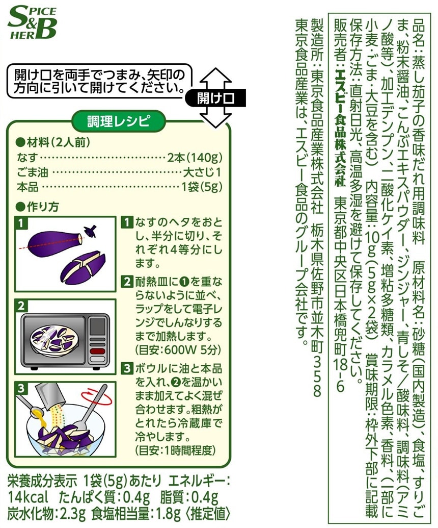 [30個]エスビー食品 マイレパートリーシーズニング 蒸し茄子の香味だれ 10g(5g×2袋入) | しそと生姜が香るやさしい味わい。