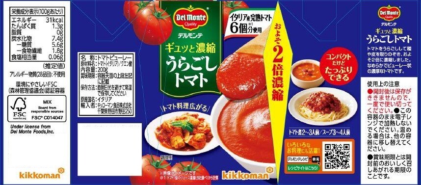 [24個]デルモンテ デルモンテ ギュッと濃縮 うらごしトマト 200g | イタリア産の完熟トマトを6個使用し、うらごしして種や皮を取りのぞき、およそ2倍に濃縮しました。