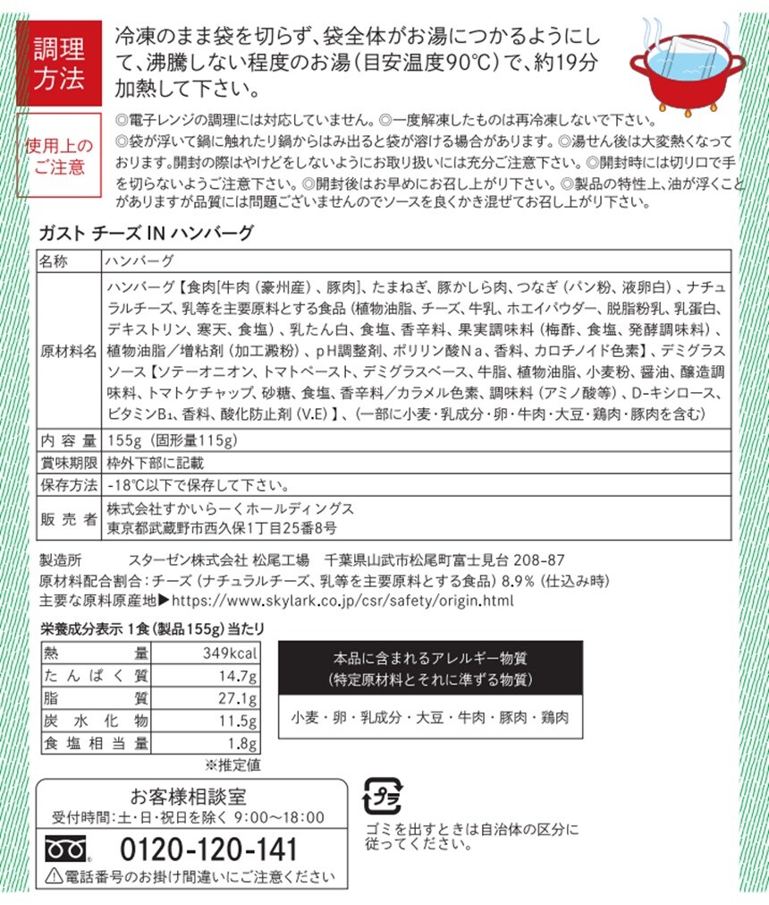 ・ガストチーズINハンバーグ 155g×2袋