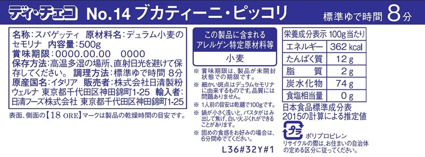 [24袋]日清製粉ウェルナ ディチェコ ブカティーニピッコリNo14 500g | ディ・チェコ―そのパスタのおいしさは、創業の頃から伝わる製法を守り、時間と手間を惜しまない情熱から生まれます。