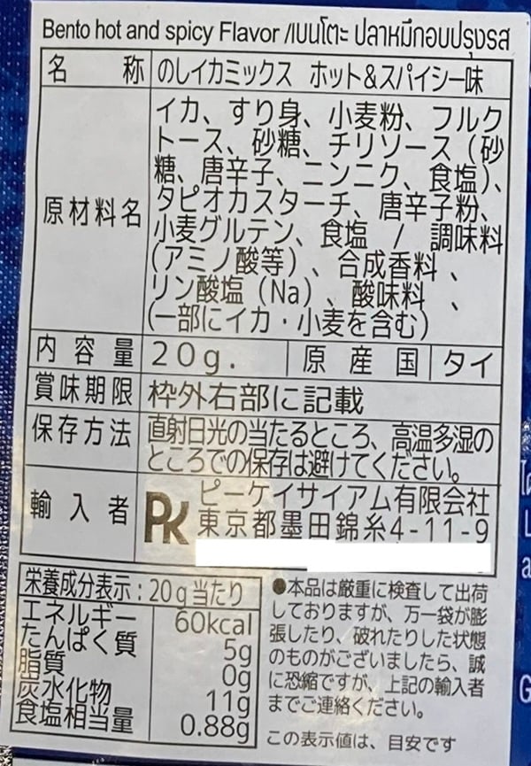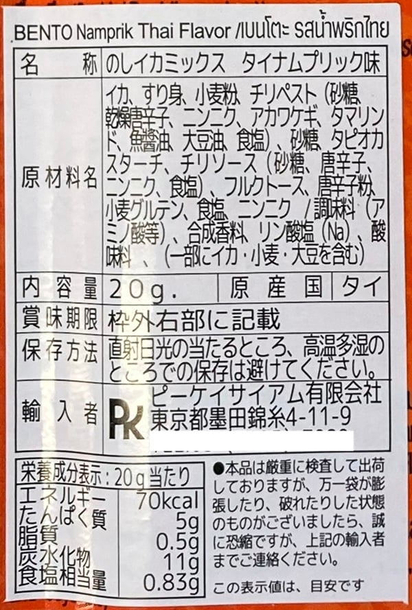 - ・Bento のしイカ タイナムプリック味 20g×6個