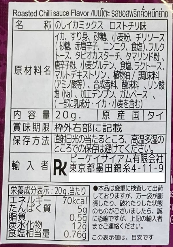 タイのコンビニやスーパーに売っている、のしイカの甘辛のお菓子です。