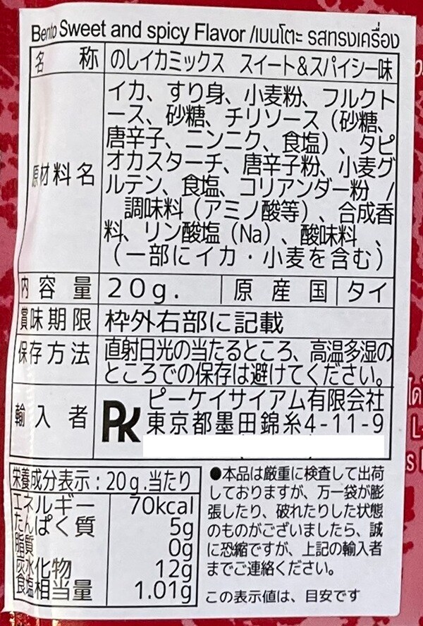 - Bento のしイカ スイート&スパイシー味 20g