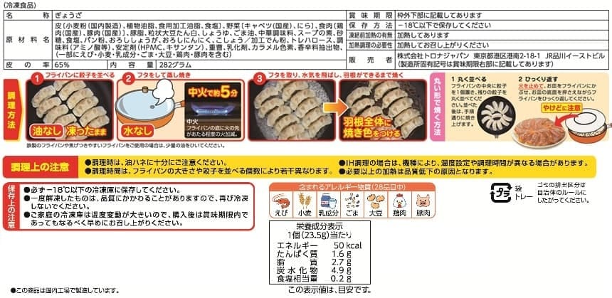 [20袋]トロナジャパン おかず三昧 餃子 282g(12個入) | 油・水を使わずに調理できる羽根付餃子です。